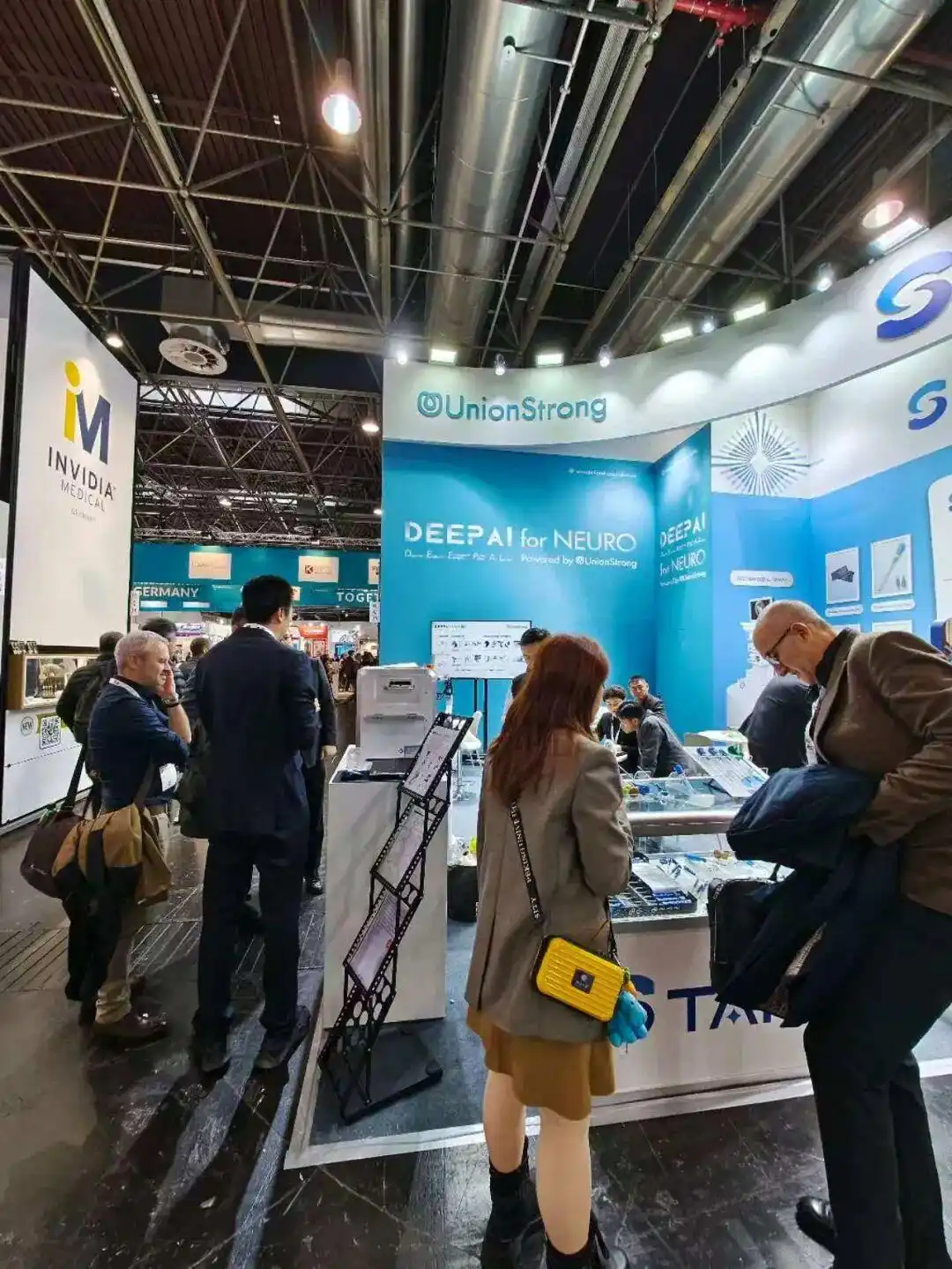 强联智创展区现场工作人员向参观者介绍产品。